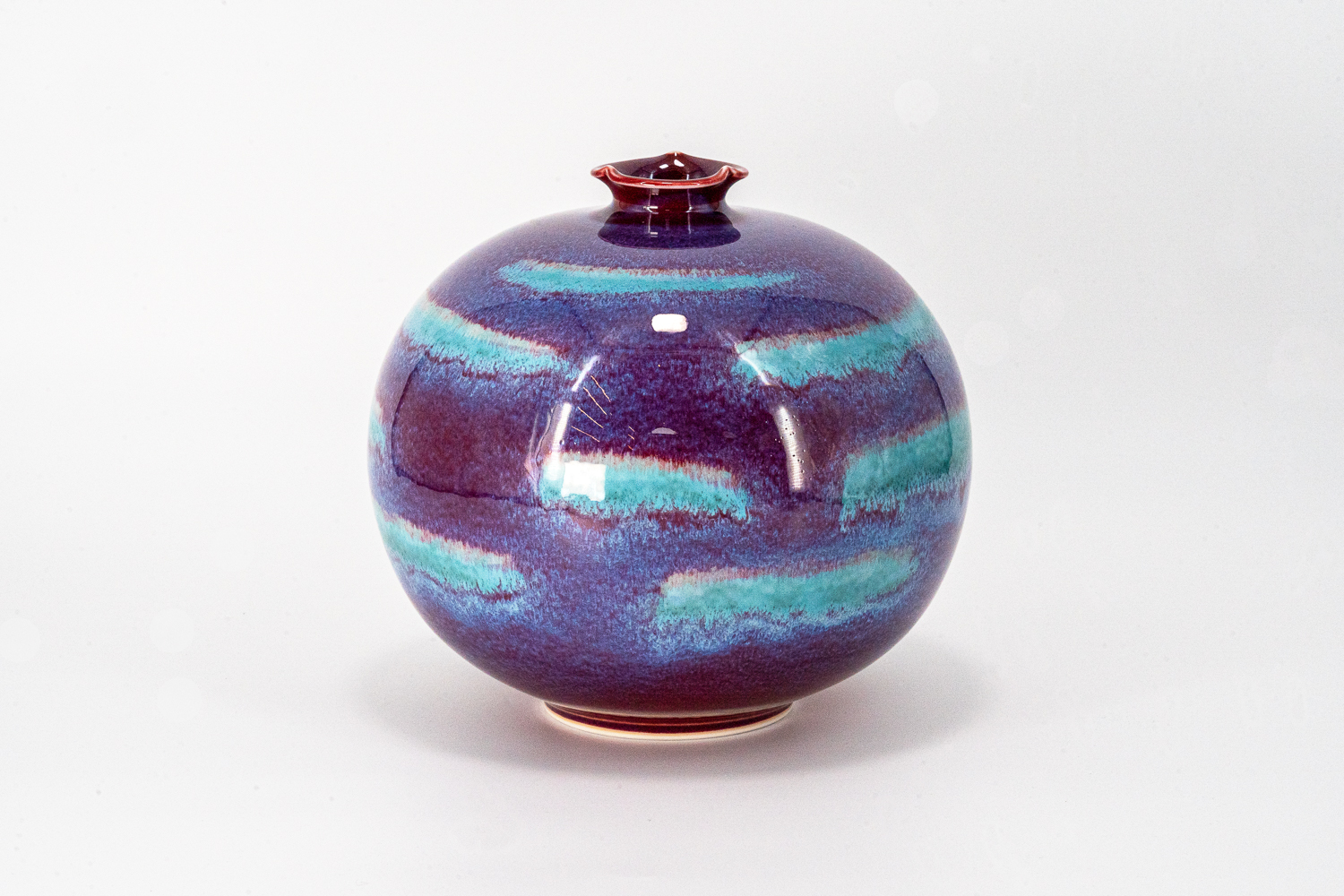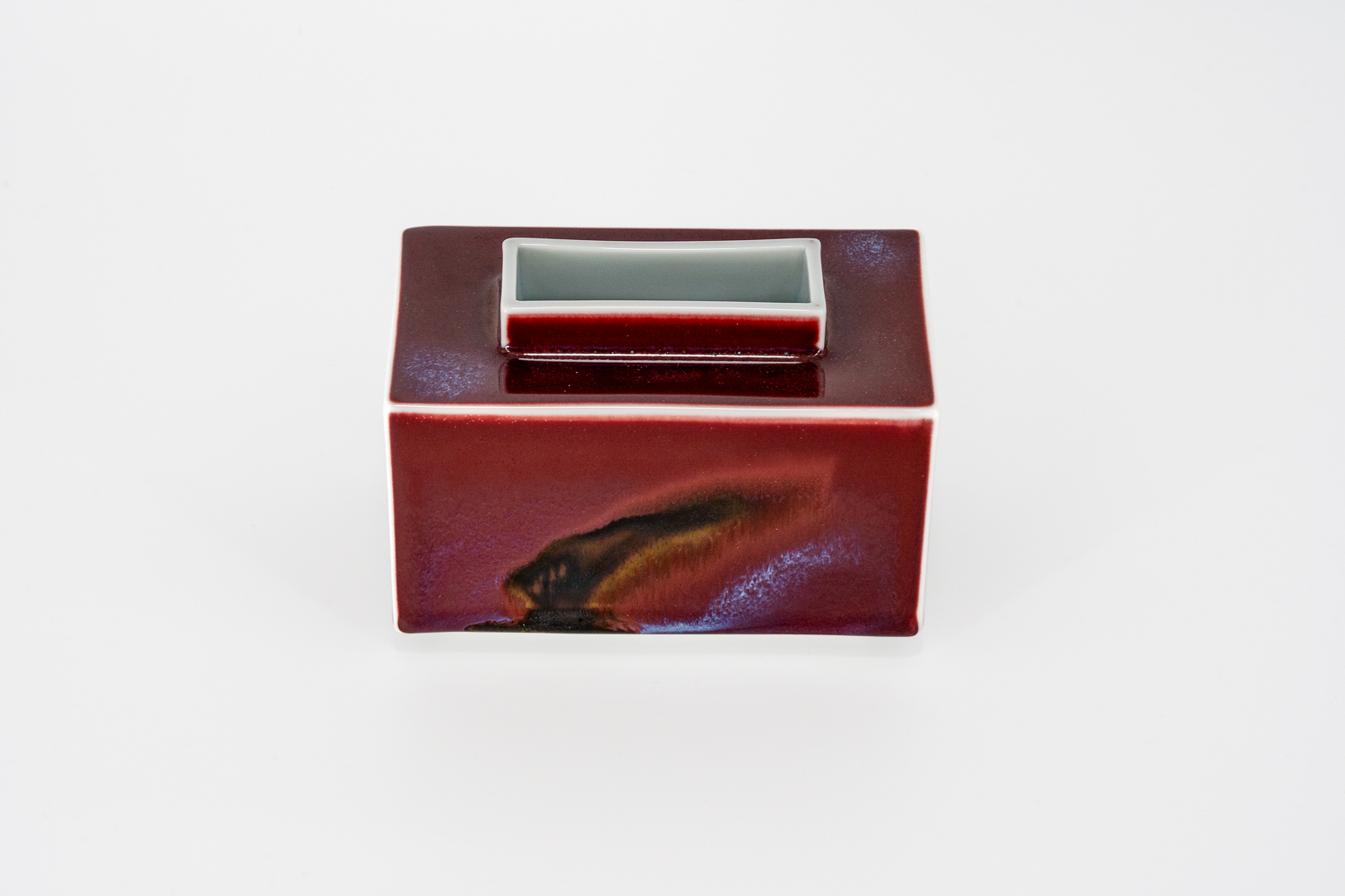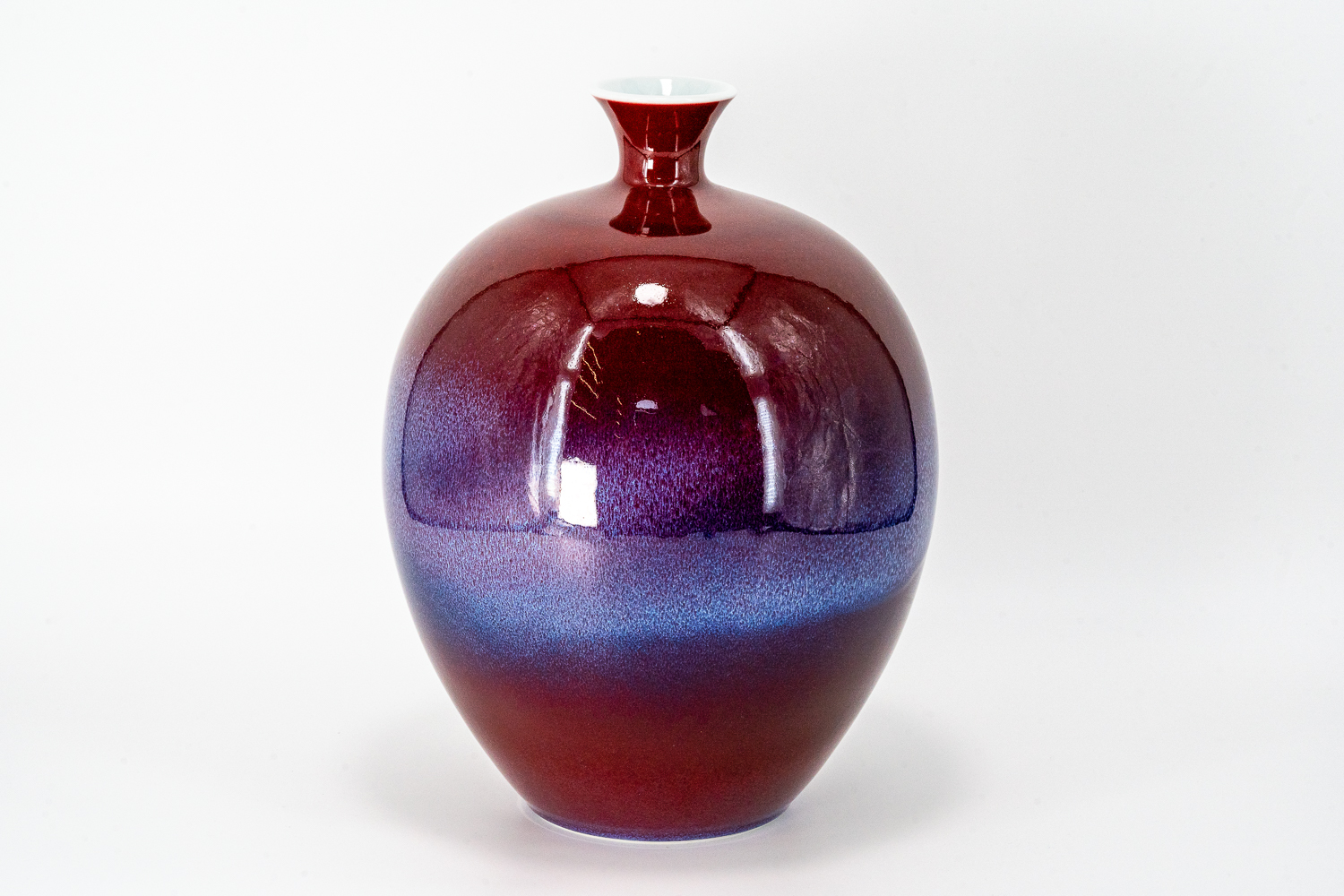 Der Fokus des Künstlers lag auf der Yohen-Technik, bei der je nach chemischer Zusammensetzung der Glasur im Laufe des Brandes unerwartete Farben und Muster entstehen. Bei der Yusei-Technik verschmelzen verschiedene Glasuren wie rubinrote Zinnober- und Kristallglasur und erzeugen so eine besonders schöne Farbabstufung. „Brillanz der Form, erstaunliche Wirkung der Glasur“ ist das Credo das sich besonders in der Zinnoberware widerspiegelt.