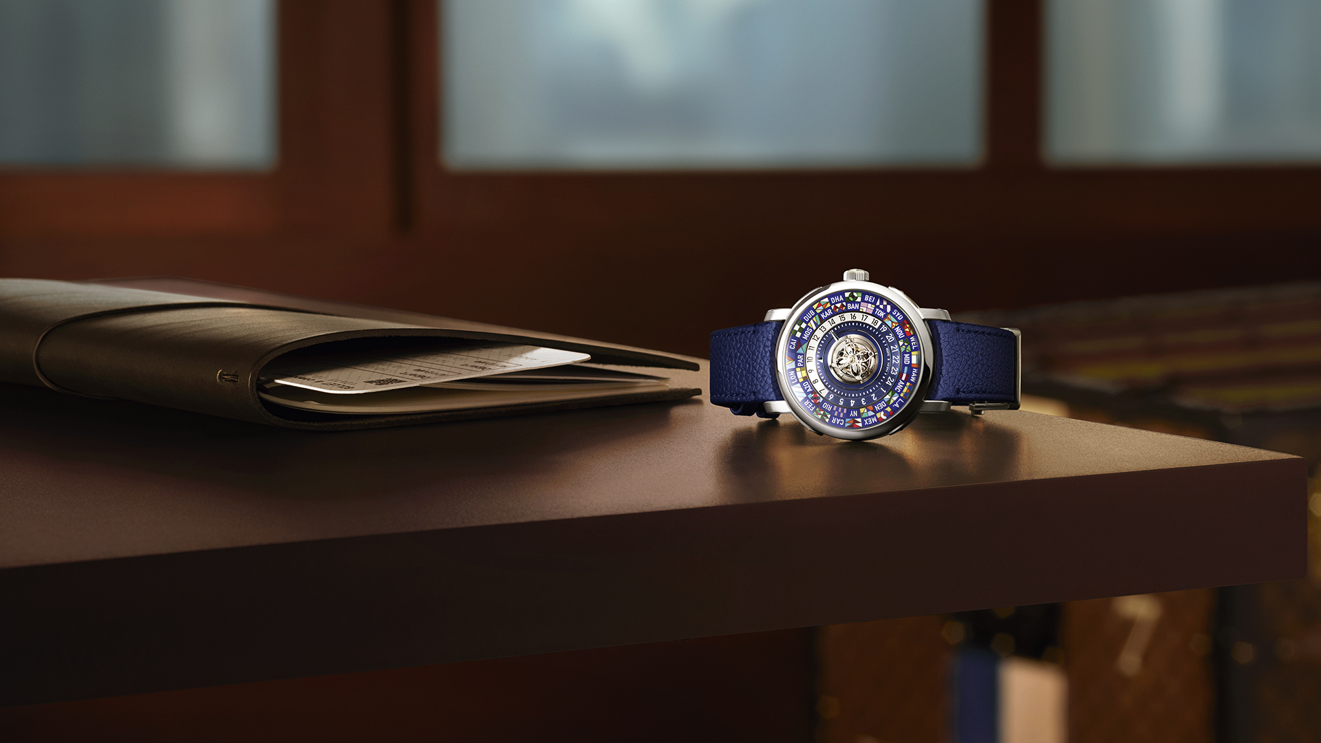 Mit der Escale Tiger’s Eye erweitert Louis Vuitton seine Erforschung ornamentaler Natursteine in der Feinuhrmacherei. Das auf 30 Exemplare limitierte Modell vereint einen monolithischen Gehäusering aus Tigerauge mit Elementen aus Gelbgold – eine neue Materialkombination innerhalb der Escale Kollektion. Die charakteristische Maserung des Steins verleiht jeder Uhr eine individuelle visuelle Anmutung. Inspiriert von der Symbolik des Reisens und der Schönheit natürlicher Materialien, verbindet die Escale Tiger’s Eye handwerkliche Präzision mit mineralischer Ausdruckskraft und zeitloser Eleganz.