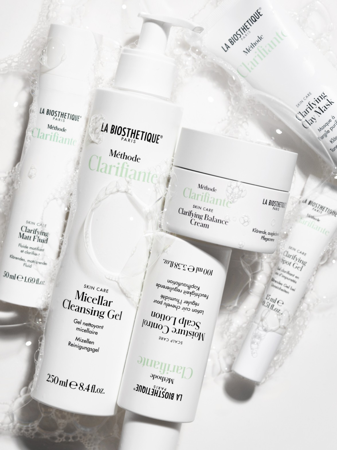 Ausgehend von der Überzeugung, dass gesundes Haar nur aus einer gesunden Kopfhaut entstehen kann, präsentiert La Biosthétique mit der Méthode Clarifiante eine konsequente Weiterentwicklung ihres holistischen Pflegeverständnisses. Die individuell anpassbare Pflegemethode wurde speziell für ölige Gesichtshaut sowie übermäßig fettende oder schwitzende Kopfhaut entwickelt. Elf perfekt aufeinander abgestimmte Pflegeformeln lassen sich zu maßgeschneiderten Routinen kombinieren, die gezielt die Sebumproduktion regulieren und das natürliche Gleichgewicht der Haut wiederherstellen.