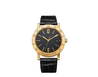 Bvlgari Bvlgari Uhr mit mechanischem Automatikwerk, 18 kt Gelbgoldgehäuse und Lünette, doppelt graviertes Logo, schwarzes Opalin-Zifferblatt, schwarzes Alligatorarmband