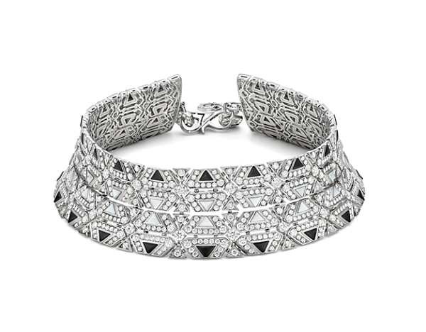 High Jewelry Collier aus Weißgold mit Perlmutt- und Onyx-Elementen sowie pavé-gesetzten Diamanten (D–F IF–VVS – 43,83 ct)