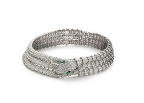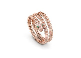 High Jewelry Serpenti Armband aus 18 kt Roségold mit 2 tropfenförmigen Smaragden und pavé-gesetzten Diamanten (D–F IF–VVS – 13,30 ct)
