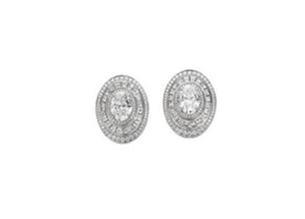 High Jewelry Ohrringe aus 18 kt Weißgold mit 2 ovalen Diamanten (E VVS1 1,51 ct / F VVS2 1,51 ct), 40 Treppenschliff-Diamanten (E–F VVS–VS – 1,72 ct) und pavé-gesetzten Diamanten