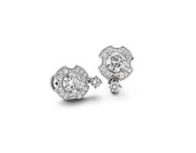 High Jewelry Ohrringe aus 18 kt Weißgold mit 2 runden Brillanten (E VVS2 – 3,00 ct), 40 Treppenschliff-Diamanten (E–G VVS–VS – 1,88 ct), 2 runde Brillanten (F VVS – 1,00 ct)