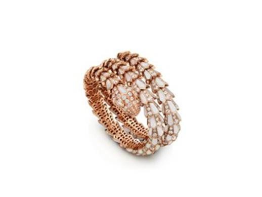 High Jewelry Serpenti Armband aus 18 kt Roségold mit Perlmutt-Elementen, 2 tropfenförmigen Diamanten und pavé-gesetzten Diamanten (D–F IF–VVS – 12,27 ct)
