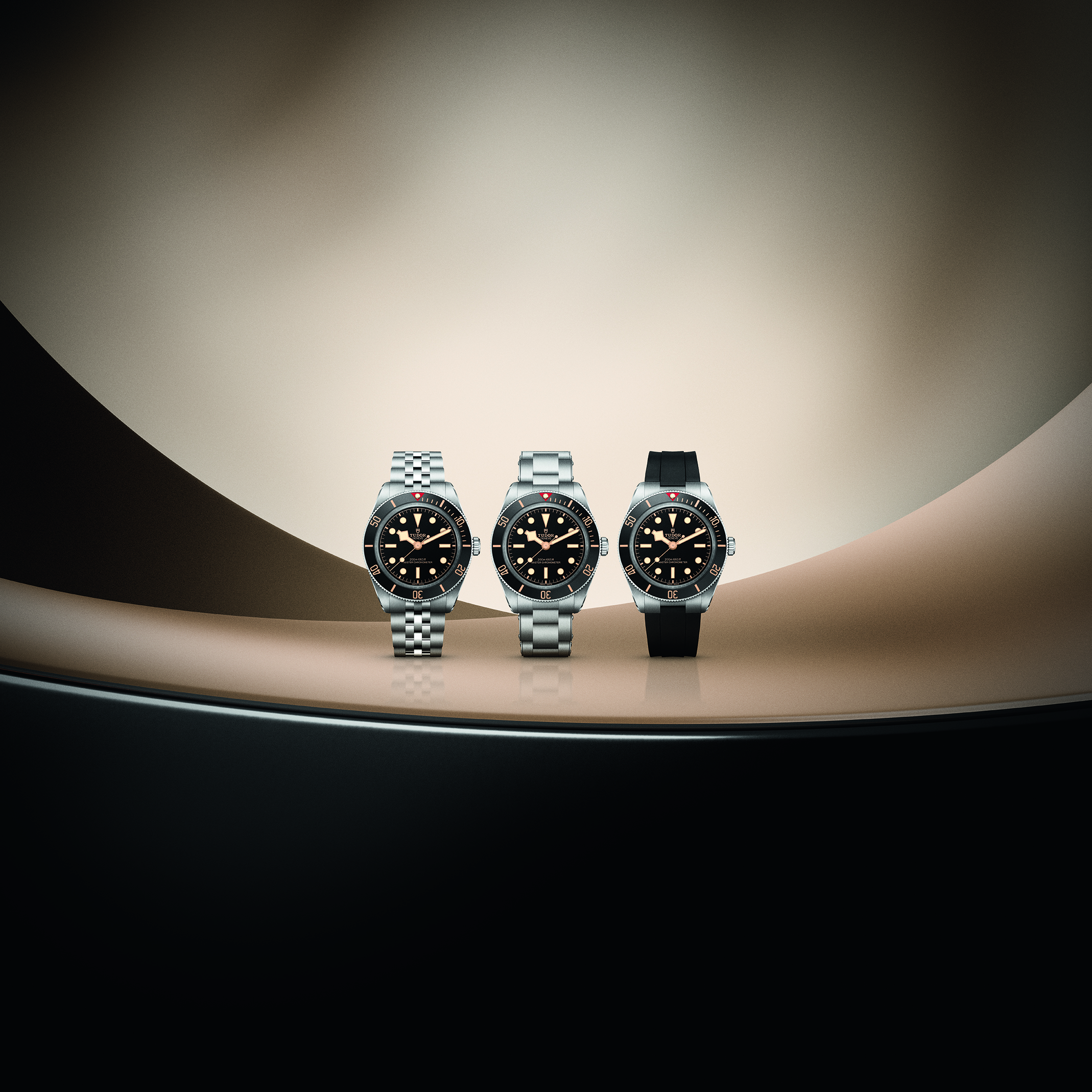 Das 39-mm-Gehäuse wurde überarbeitet und ist mit 11,7 mm flacher gestaltet, was den Tragekomfort zusätzlich erhöht. Neu ist zudem die Wahl zwischen drei- oder fünfreihigem Edelstahlband sowie Kautschukband – alle mit „T-fit“-Schließe. Auch die Ästhetik wurde behutsam weiterentwickelt: Ein reduziertes Zifferblatt und überarbeitete Proportionen bei Zeigern, Lünette und Krone sorgen für eine noch klarere Anmutung. Gleichzeitig bleibt die BLACK BAY 58 ihrer Herkunft weiterhin treu und greift die charakteristischen Proportionen der 1950er-Jahre sowie Designelemente der historischen Referenz 7924 auf.