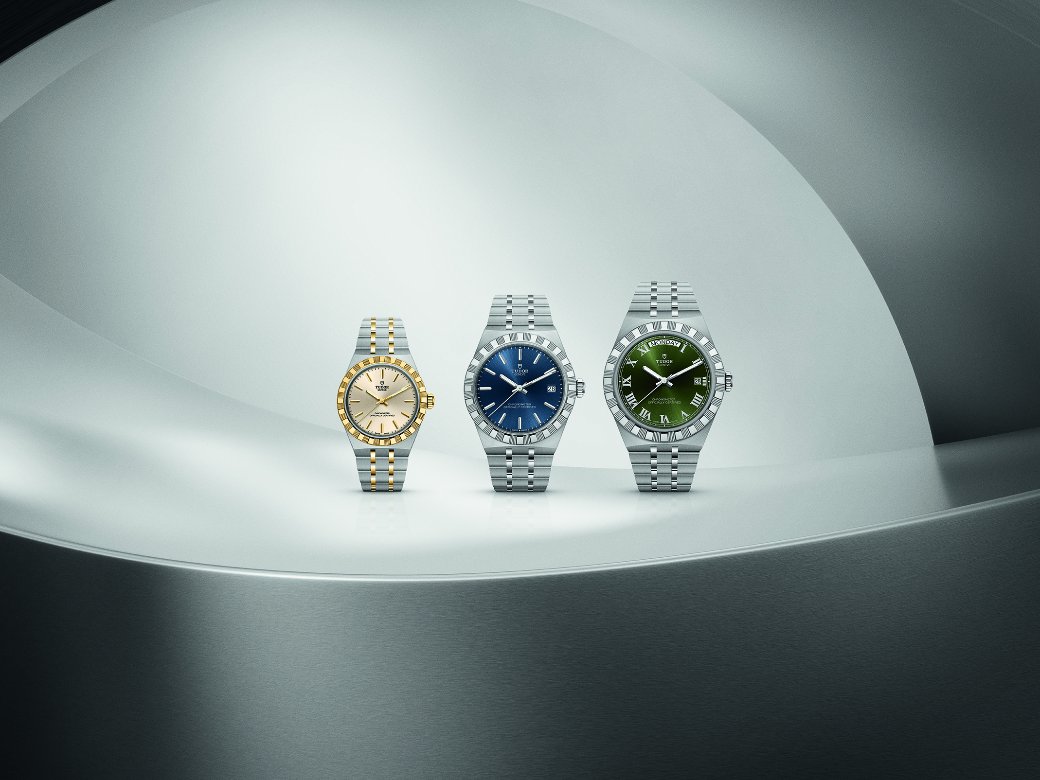Die TUDOR Royal mit ihrem integrierten Metallarmband, ihrer charakteristischen Lünette und ihrem Manufakturwerk ist der Inbegriff von vielseitiger sportlicher Eleganz. Nun ist sie erstmals mit Manufakturwerken ausgestattet. Darüber hinaus wird die Royal mit zahlreichen aufregenden Farben und Größen angeboten – mit einer brandneuen Ästhetik, die ebenso raffiniert wie klar ist.